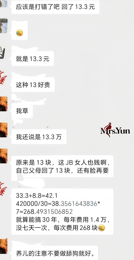 彩礼给了33.3万,女方回了13.3元。结婚当天,新娘家临时起意,要8.8万接亲红包。僵持后喜娘协调要不给3万3吧,结果女方说,即使要3也要给13.3万,新郎哥瞒着父母又给了8万8才接上新娘。